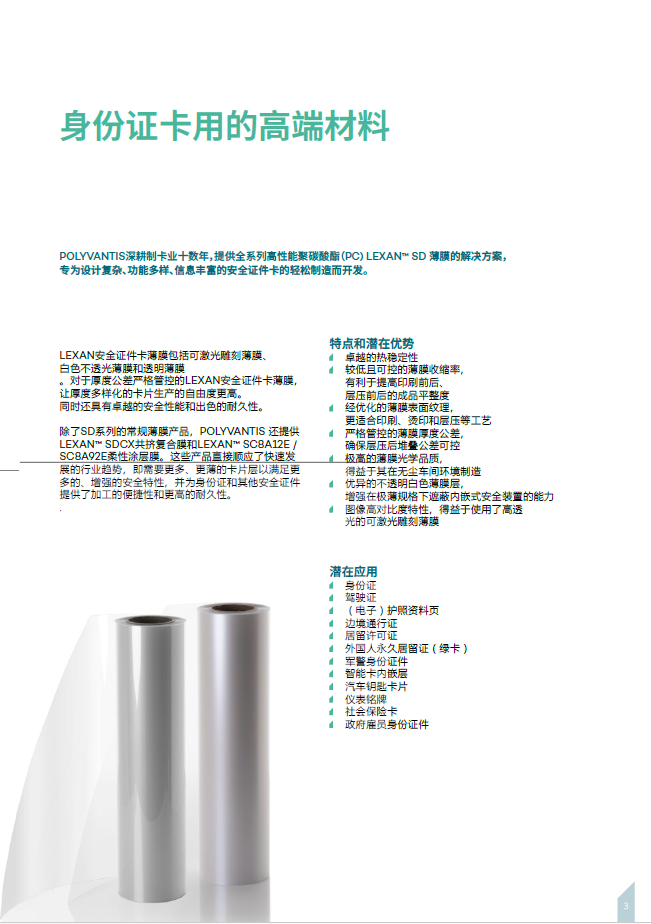 POLYVANTIS 安全證件卡用的 LEXAN™ SD 聚碳酸酯薄膜材料